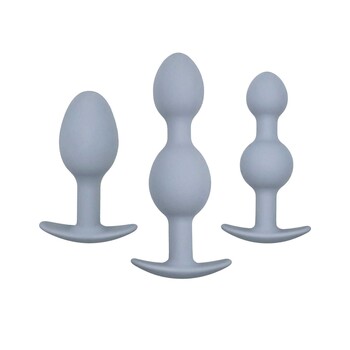 Get 3 great reasons to shake your tush with the Vibra-Ball Trio! This butt plug set comes with 3 beaded plugs in different sizes to take your anal skills from beginner to advanced in no time. Each plug has a rolling weight inside that shakes as you move for a vibrating-like sensation – no batteries needed! They slip in easily with just a little lube thanks to their super-smooth finish. Beaded shapes add filling stimulation, while flared safety bases keep the plugs securely in place. Made from anal-friendly silicone.